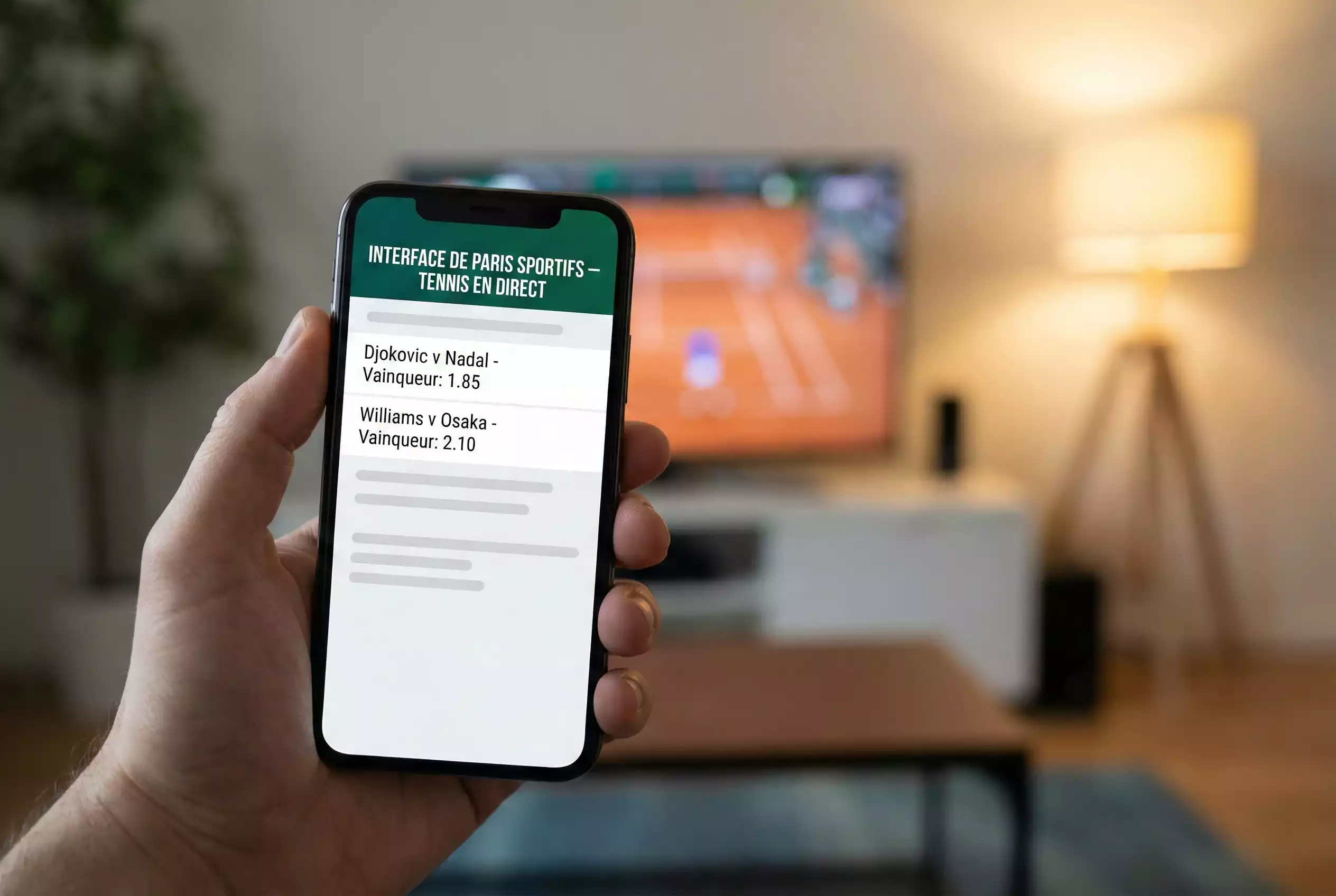 Main tenant un smartphone affichant une application de paris sportifs